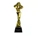 Wooden and glass trophy, perfect for recognition and awards.