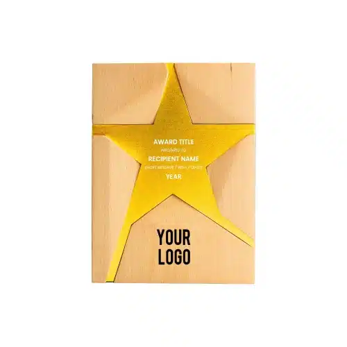 Strato Wooden Trophy with Metal Star for celebrating top performances.
