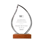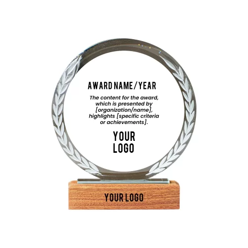 Zephyr Crystal Trophy with Wooden Base for prestigious recognitions.