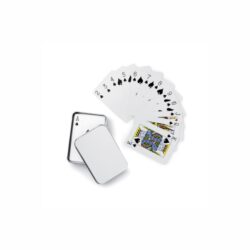 Playing set with 54 cards and 5 dice. Presented in wooden box.