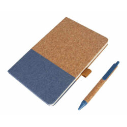 BORSA – eco-neutral A5 Cork Fabric Hard Cover Notebook and Pen Set – Blue