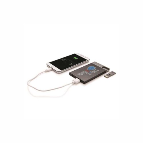 Thin 2500 mAh powerbank with detachable 8 GB USB 2.0 flash drive. ABS material. Output 1V/1A and input 5V/1A. Including micro USB cable. Registered design®