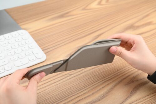 3N1 Unique shape Foldable 15W Magsafe Phone, 2.5W Watch and 3W Airpod Wireless Charger with no – stitching welding technology RCS PU material. Product Size: 29.5×6.7×0.9cm. Packaging: FSC Paper Box