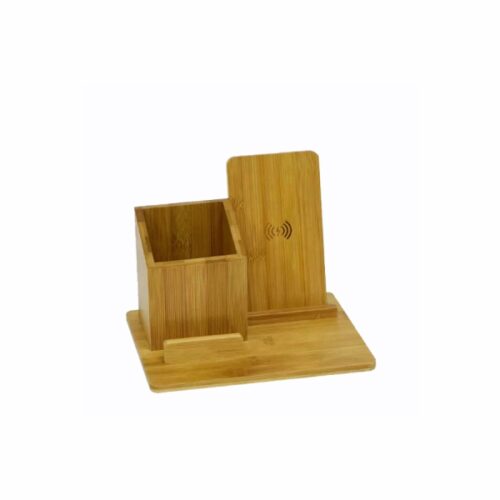 Bamboo QI Fast Wireless Charger Pad with Stationary Organizer