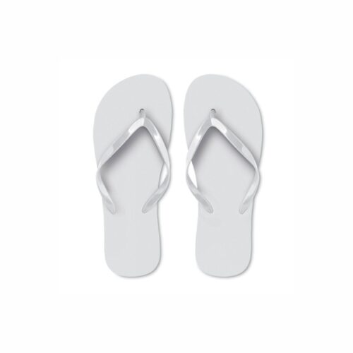 Beach slippers in polyethylene sole with pvc strap. 2 sizes available, M fits 36-39 and L fits 40-43.