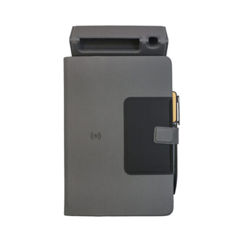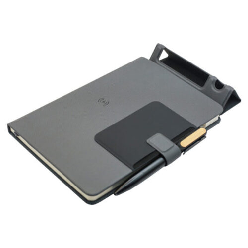 The Benz Premium Textured A5 Notebook is the ultimate blend of functionality and elegance. Designed for professionals and creatives, this notebook features a sleek, premium textured cover, a foldable phone and pen stand, and a convenient card holder. Equipped with 15 W wireless charging capabilities, it ensures your devices stay powered throughout the day. Complemented by a stylish metal and wooden pen, this notebook offers a refined writing experience. Packaged in a pristine white box, it makes an exceptional gift or personal accessory for those who value both style and practicality.