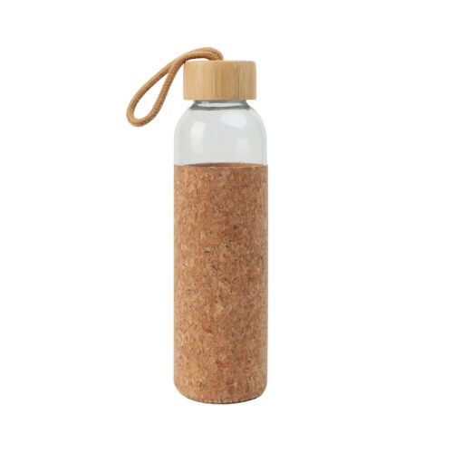 - Bottle: A glass bottle with a cork sleeve and a bamboo lid with a holder on top