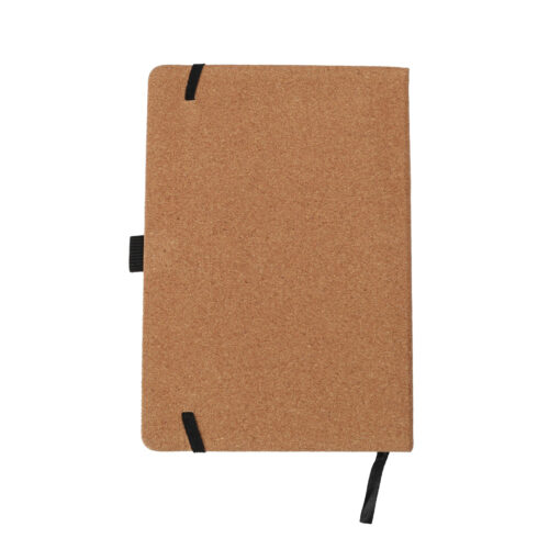 - Cork Notebook: A cork notebook with black elastic closure and lined sheets