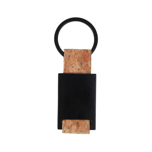 - Keychain: A black metal keychain with cork detailing