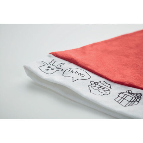 Kids Santa hat with 5 crayons and design to colour in. Keep the kids busy during the Christmas dinner with this DIY Santa hat. It comes with 5 crayons so they can get creative and decorate their own Santa hat.