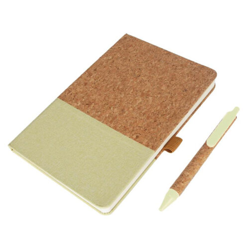 Borsa is an eco friendly notebook made from a combination of linen and cork materials. Also includes a matching eco friendly pen made from Cork and Eco-Friendly Wheat Straw. Packed in a Eco-Friendly Gift Box.