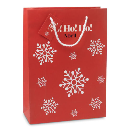 Elegant gift paper bag with snowflakes pattern. Gift tag included. Large size.