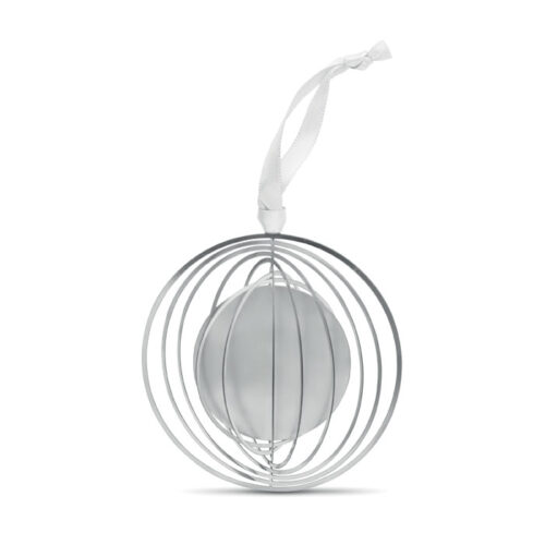 Circular shaped decorative ornament in stainless steel with ribbon in gift envelope. Easily folds flat for mailing and storage.