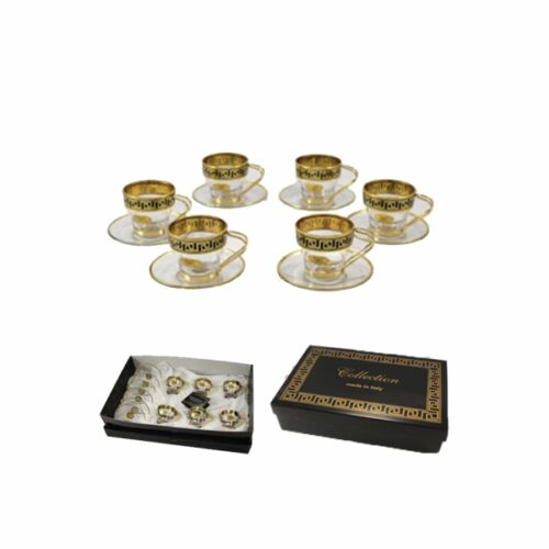 Caffè Deborah Cup Set – Versac Gold Black. Exclusive glassware made by professional glassmakers in Italy. The base is created using the most sophisticated technology and the decoration is completely done by hand by experienced craftsmen in this field.