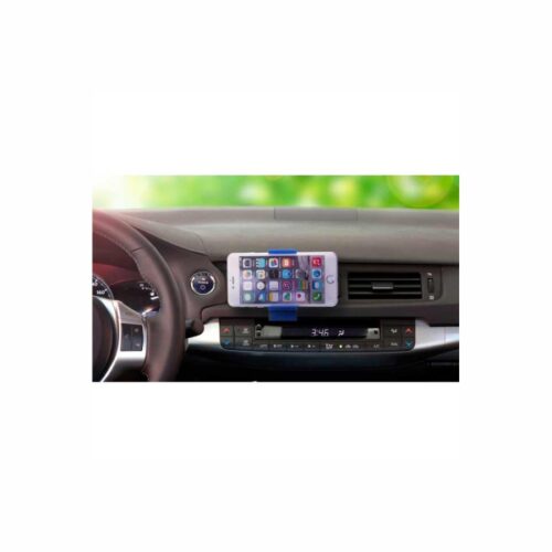 Smartphone holder with double telescopic fixing system for car ventilation grill. In a stylish bicolor design, it incorporates a system of pads in the stand that provides optimum fit and protection for your smartphone.