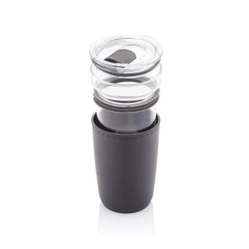 Cerra is a 16oz Premium Glass Tumbler with RCS-certified Recycled PP protective case. Made from durable heat-resistant borosilicate glass and RCS-certified recycled polypropylene, Cerra is a sustainable beverage tumbler that’s perfect for everyday use. All the components are detachable and can be properly washed, cleaned and effectively recycled. Packed in a gift box. Content: 480ml