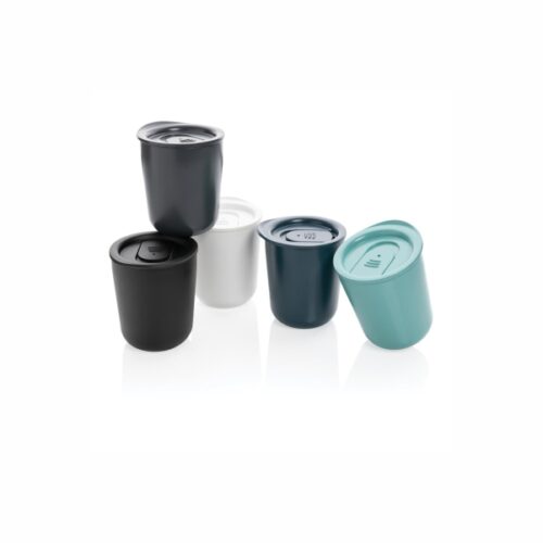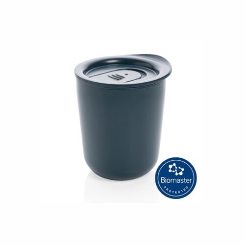 This simplistic designed stainless steel tumbler is not only aesthetically beautiful but is also protected with Biomaster, an Anti-Microbial agent that provides a second line of defence against harmful bacteria. The body and lid are both treated and it’s IN the product, not ON the product which will give you permanent protection. This product is tested in accordance with ISO 22196 for Anti-Microbial effectiveness. Biomaster does not affect the recyclability of the item. The product also includes Verimaster a unique tracer that is built into the material to prove that the item is treated with Biomaster. With closable lid. PP inner, stainless steel outer. Capacity 250ml. BPA free.