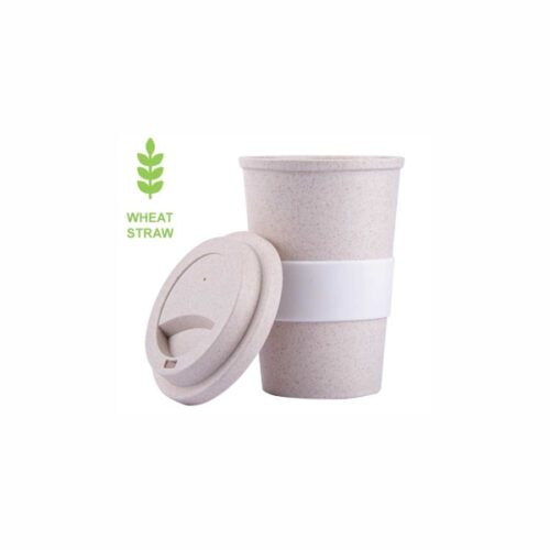 • Reusable coffee mug 380ml made from wheatstraw and silicone grip to help you hold hot liquids.