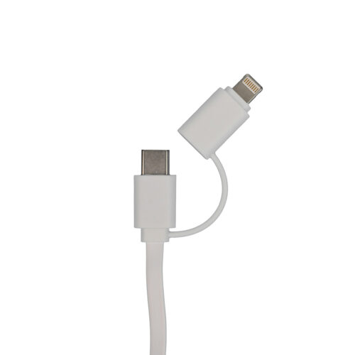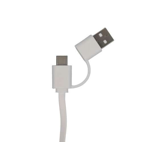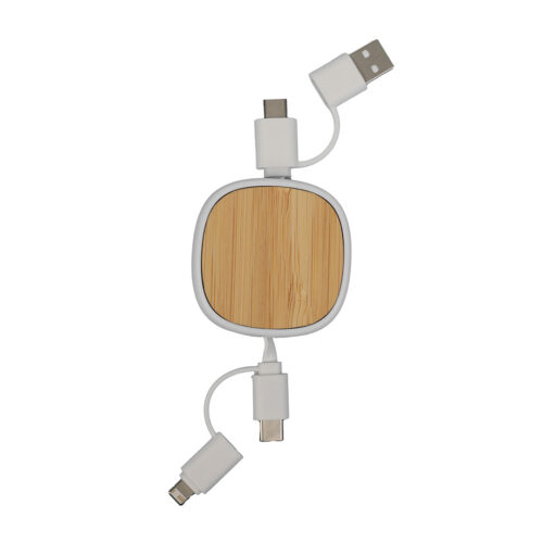4 in 1 charging cable quipped with fast charging made from bamboo, ABS & metal. Comes with USB+Type-C input port & Type-C + micro USB + lightning & android 2-in-1 port.