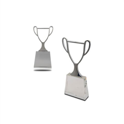 Premium award with brush metal top crafted in a shape of a trophy, with a tall crystal base. Branding can be done on the metal plate provided which is placed between the ears of the trophy. We can also print on the crystal base.