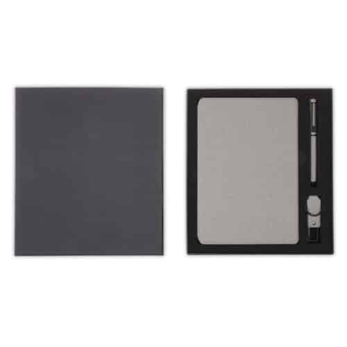 LENZEN – CHANGE ZERO Sustainable Gift Set with Refillable Notebook, Pen & USB Keychain – Grey