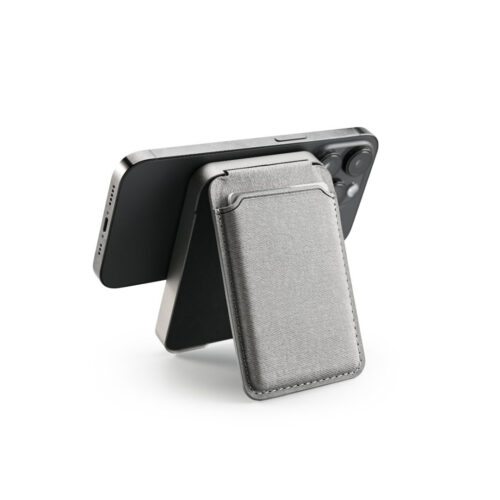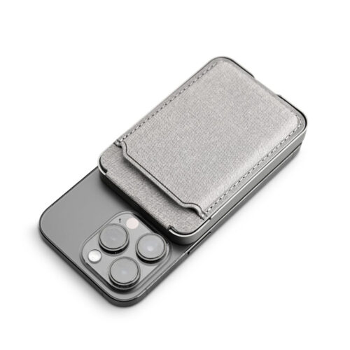 10W magsafe 4500mAH powerbank card wallet with phone stand in recycled PU material and recycled plastic material. Unique handy mobile accessory that gives power to your mobile and keeps your card all in one. Packaging: Tin Box