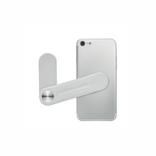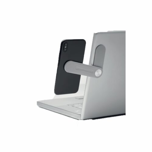 Magnetic phone holder with metal ring. Attach this holder to a laptop and because it is magnetic, it can hold your smartphone. There is a 3M sticker on the back to attach it. Ideal for at the office when you use both your laptop and phone frequently