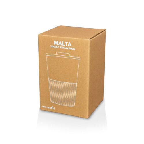Malta is a reusable 350ml coffee mug made from eco-friendly wheat straw material. Includes a silicone grip for comfortable holding even while hot. Dishwasher safe. Packed in a kraft paper gift box.