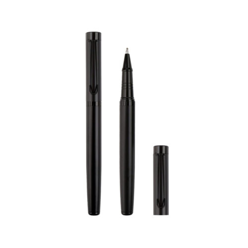 Pori is a Ballpoint Pen made of aluminum stainless and copper with matte black upper and lower barrel. Also with twist action and gold plated elements. Comes in blue ink. Available in two colors.