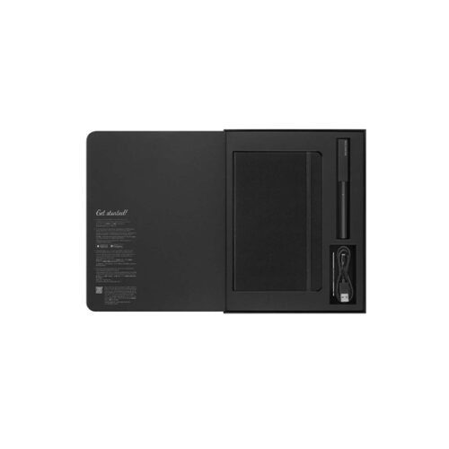 Contents include Smart Notebook (large, ruled, hardcover) with Ncoded paper designed to work with a Smart Pen with 1 pen tip ink refill and magnetic charger.