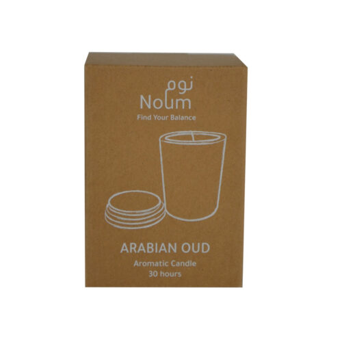 Enjoy tranquility, peace and balance with the Noum aromatic / scented candle. With the fragrance of Arabian Oud, the scented candle comes in an elegant frosted glass jar with bamboo lid. Lasts 30 hours. Packed in a kraft gift box