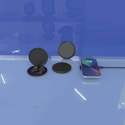 Oslo is the latest extension of our popular multi-cable sets, with 15W wireless charging feature added. It’s made from RCS-certified recycled ABS plastic. Includes all essential connectors: Type C, Lightning, micro USB and USB-A. Also includes an ejector pin + 3 SIM card slots. Premium magnetic closure. Packed in recycled kraft box