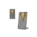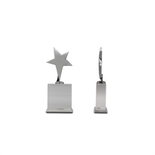 Premium award with shiny chrome plated metal star, on a crystal base. Branding can be done directly on the crystal base, or on a brushed metal plate placed over the same.