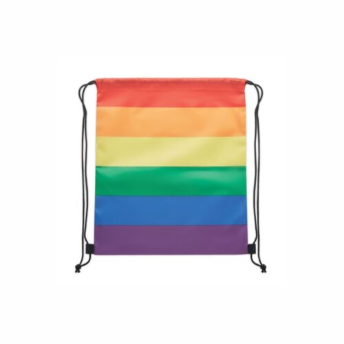 Rainbow drawstring bag made from 210D RPET polyester with PP strings.