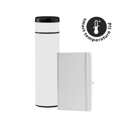 SARGAN – Vacuum Flask with Temperature Lid and Notebook Gift Set – White
