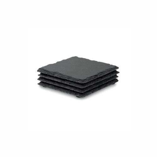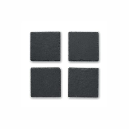 Set of 4 coasters made of slate with EVA bottom.Dimensions: 10X10X0.3CM