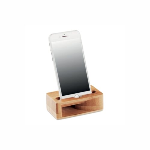 Smartphone stand and amplifier in bamboo material. Bamboo is a natural product, there may be slight variations in colour and size per item, which can affect the final decoration outcome.