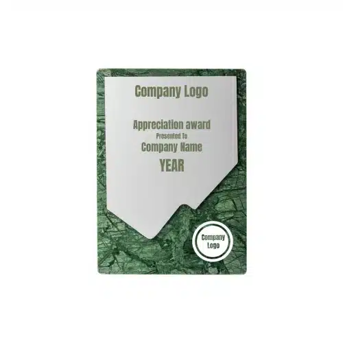 Premium plaque award featuring a green stone background and silver metal plate. A sophisticated choice for appreciation and recognition ceremonies.