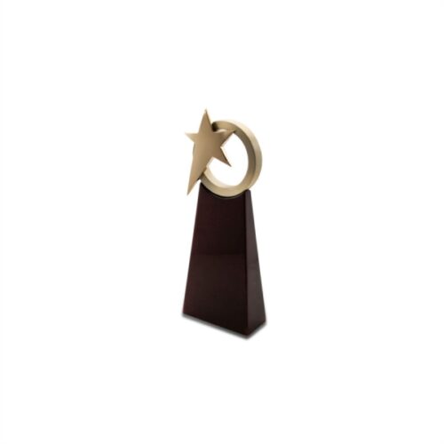 Prestigious award comprises of a rosewood base with Lacquer piano finish and a brass star shaped top giving it a premium look. Message can be printed directly on the base, or on a metal plate which can be attached to the base.