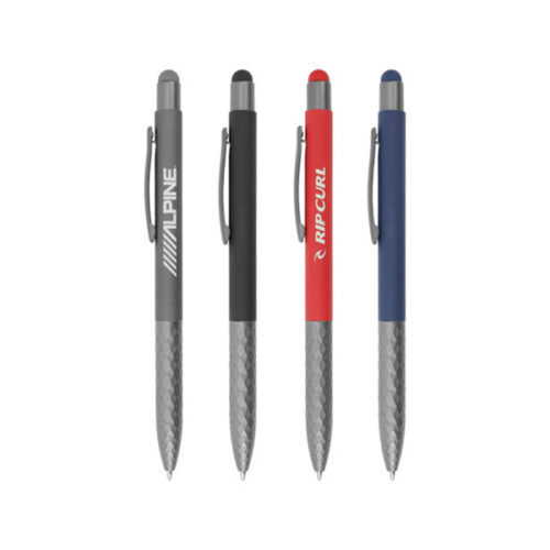 If you are looking for a promotional item that offers a combination of visual appeal, practicality, and the ability to promote your business, our Stylus Metal Pens with Textured Grip in the Gunsmoke color is a highly recommended option. These items are specifically crafted to create a long-lasting effect and leave recipients with a favorable perception of your brand. Enhance your brand with these pens that combine elegance, significance, and practicality, making them a valuable gift to give and receive.