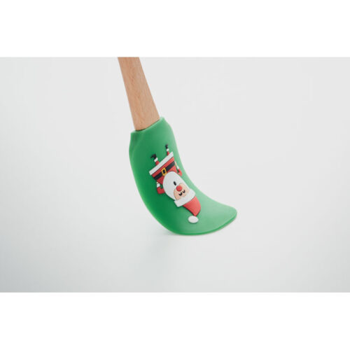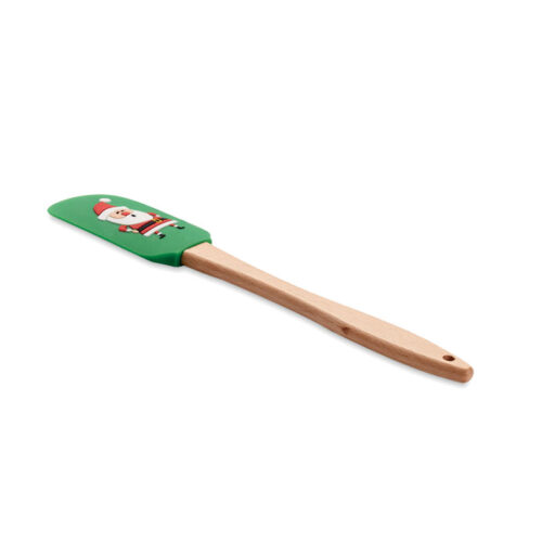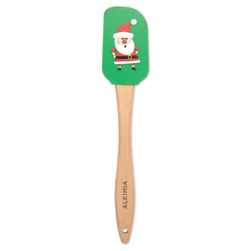 Christmas silicone spatula with seasonal design and wooden handle. Bring the Christmas spirit into your kitchen with this silicon spatula. Ideal for baking and cooking, this silicon spatula will not damage your appliances.