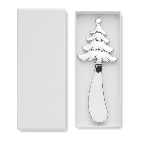 Cheese knife in zinc alloy in Christmas tree shape. Presented in giftbox.