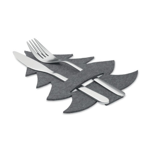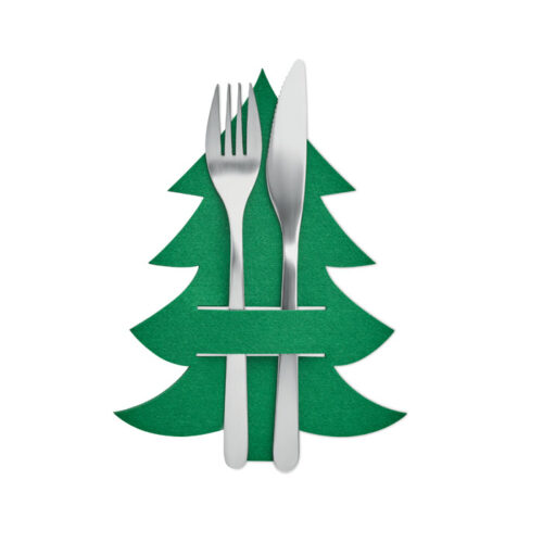 Set of 4 RPET felt cutlery holders in christmas tree shape presented in kraft box. As everybody is looking forward to the Christmas dinner, the decorations might be as important as the food. Decorate your table and plates with these felt cultery holders, made from recycled PET material.
