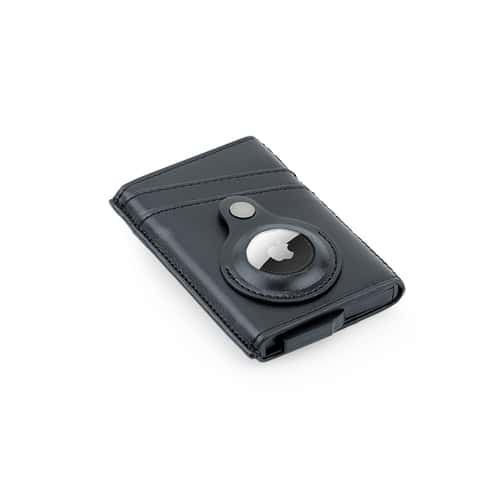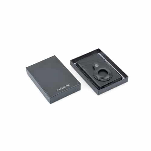 Contemporary, durable and high-quality RFID cardholder with Santhome Tag / Airtag pocket. The holder has a sliding mechanism and fits 5 cards in the case with anti-skimming RFID technology. Additional pockets outside help fit 4 additional cards, so total 9 cards can be carried at once. Pocket is suited to fit Apple Airtag or Santhome Tag that can track your card wallet worldwide so you never lose your credit and ID cards again. Packed in a gift box.