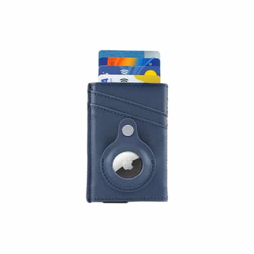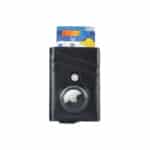 Contemporary, durable and high-quality RFID cardholder with Santhome Tag / Airtag pocket. The holder has a sliding mechanism and fits 5 cards in the case with anti-skimming RFID technology. Additional pockets outside help fit 4 additional cards, so total 9 cards can be carried at once. Pocket is suited to fit Apple Airtag or Santhome Tag that can track your card wallet worldwide so you never lose your credit and ID cards again. Packed in a gift box.