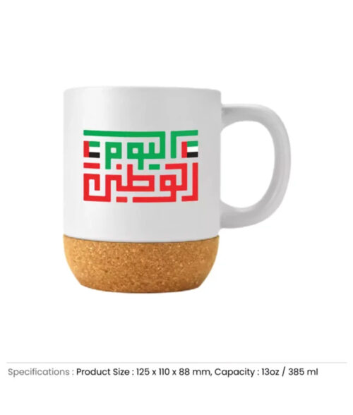 UAE Day Ceramic Mugs with Lid and Cork Base 385 ml