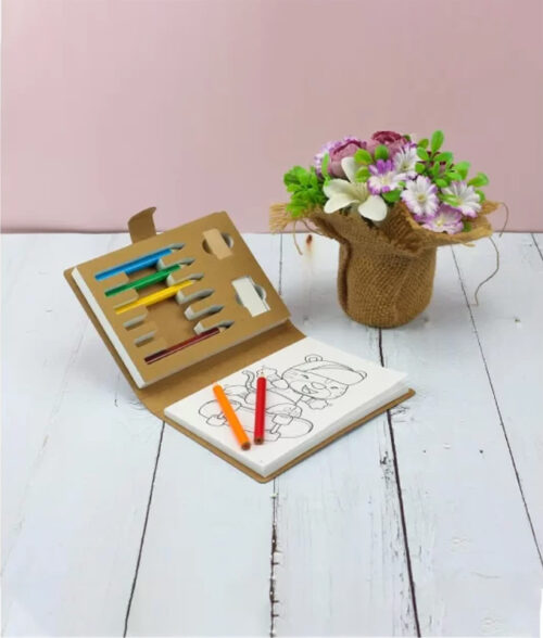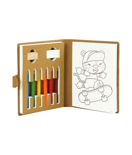 The Eco-Friendly Drawing Pad Set includes 50 sheets of 80gsm white paper—24 sheets for coloring and 26 for drawing. It comes with 6 vibrant colored pencils, a wooden sharpener, and a white eraser. Perfect for artists of all ages, this sustainable set promotes creativity while being kind to the environment. Ideal for drawing, sketching, and coloring!