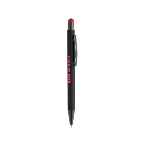 Ballpoint pen with twist mechanism, body in solid black color and stylus in a wide range of colors. Contrast Gun metal trims. Especially designed for laser engraving, including a special coating for your logo to be properly engraved in matching color with the stylus. With 1200 m writing length and German Dokumental® Ink.