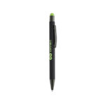 Ballpoint pen with twist mechanism, body in solid black color and stylus in a wide range of colors. Contrast Gun metal trims. Especially designed for laser engraving, including a special coating for your logo to be properly engraved in matching color with the stylus. With 1200 m writing length and German Dokumental® Ink.