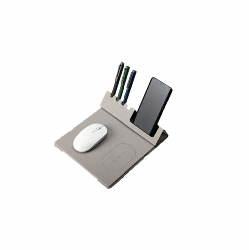 10W Fast charging wireless mouse pad with Type C input made from a Special Certified Antibacterial PU material. Can be used as a desktop organizer than can hold 4 pens, has space for business cards or can be used as phone stand. Product Size: 23.5x 22x 0.7cm (folded) Packaging: Black Paper Envelope